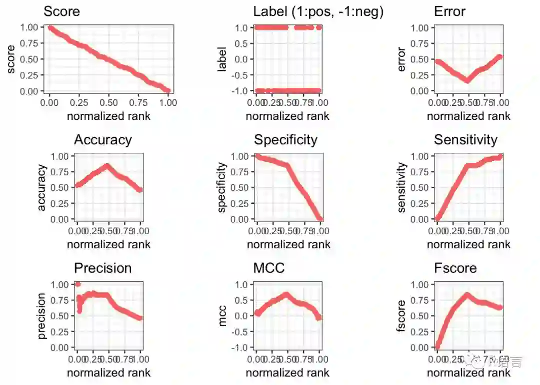 ROCR已经存在了近14年,是绘制ROC曲线的一个坚如磐石的工具。我特别喜欢performance()函数通过输入真阳性率tpr和假阳性率fpr和参数来设置曲线的计算方法。这不仅具有令人放心的透明性,还显示了通过输入适当的参数来计算二进制分类器的几乎所有性能度量的灵活性。例如,要生成precision-recall曲线,您需要输入prec和rec。虽然没有vignette,但包的文档非常好。
