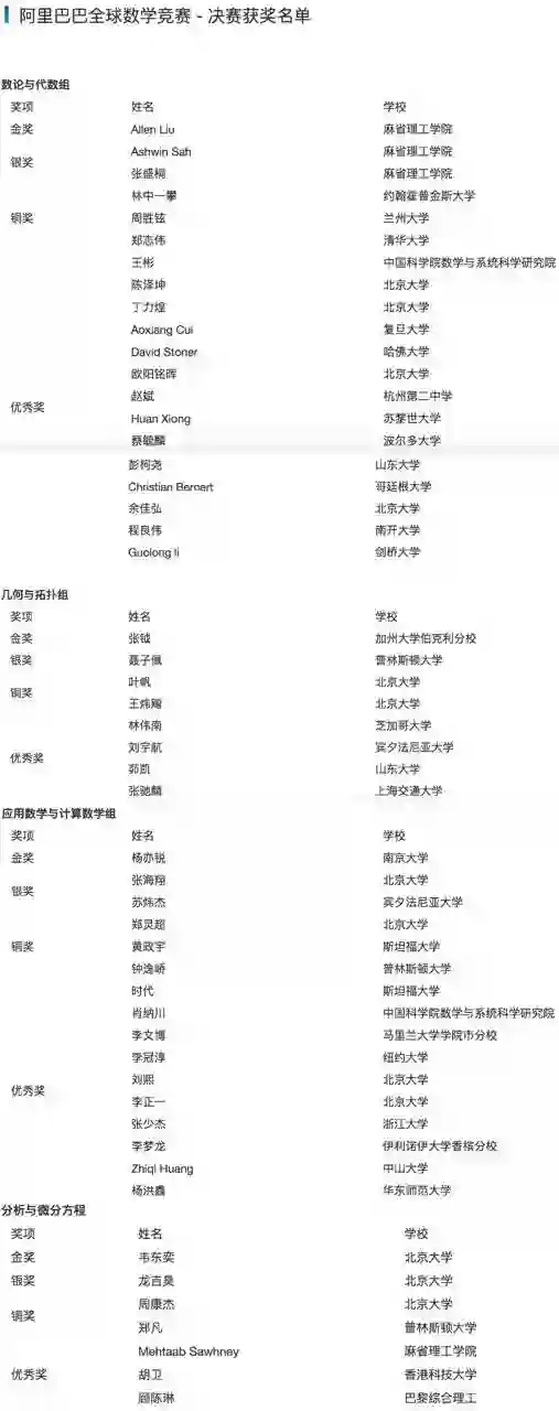经过激烈角逐,共有 51 名选手在决赛中脱颖而出,下面是阿里巴巴官方公布的决赛获奖名单: