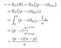 同样的,我们也可以算出期望利润作为产品的利润,(p-c),购买的可能性为 (u-p)/u。