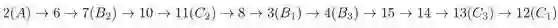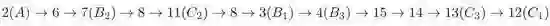 A -> B2 -> C2 -> B1 -> B3 -> C3 -> C1