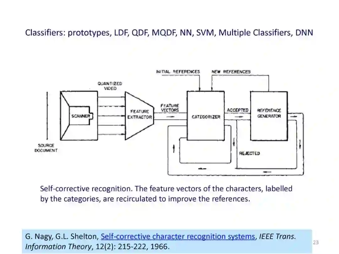 [1] G. Nagy, G.L. Shelton, Self-corrective character recognition systems, IEEE Trans. Information Theory, 12(2): 215-222, 1966.