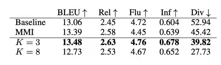 最后还有一项对话的实验,也验证了我们的结论,如表9。评价指标详见论文。