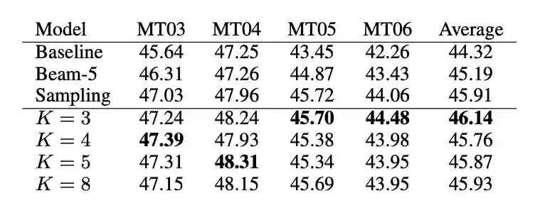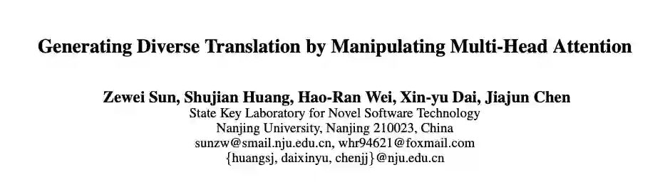 本文基于一项对Transformer多头注意力的观察展开:解码器(Decoder)的最后一层对于编码器(Encoder)的多头注意力机制,代表了多重词对齐。并利用该现象,生成多样化翻译。更进一步,利用多样化翻译,辅助利用逆向翻译技术(back translation),增强翻译模型性能。最后一项有关问答任务的实验也证明了性能的提升。