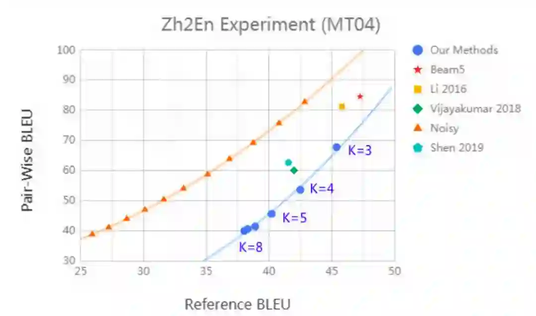 图3:Pair-Wise BLEU对Reference BLEU