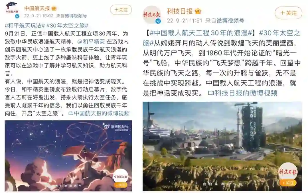 《和平精英》还加盟参与了由微博航天发起的#30年太空之旅#主题活动,与近30家航天媒体共同致敬中国载人航天工程的“三十而立”,鼓励更多玩家参与到致敬行动中来,目前话题累计阅读量已超1.4亿。