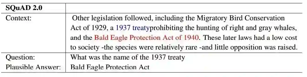 [26] Rajpurkar P, Jia R, Liang P. Know What You Don't Know: Unanswerable Questionsfor SQuAD[J]. arXiv preprint arXiv:1806.03822, 2018.