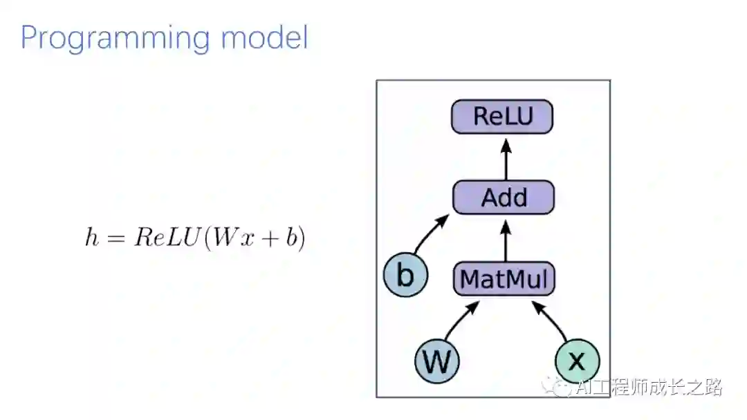 Tensorflow将数值计算表达为一个计算图,图中的节点为算子,图中的边为多维数组。