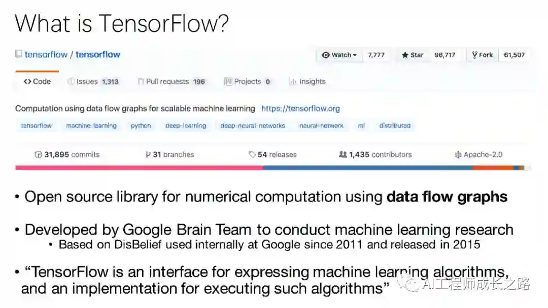 关注公众号“AI工程师成长之路”, 回复"Tensorflow知多少", 获取最新最全的自制tensorflow综述PPT。