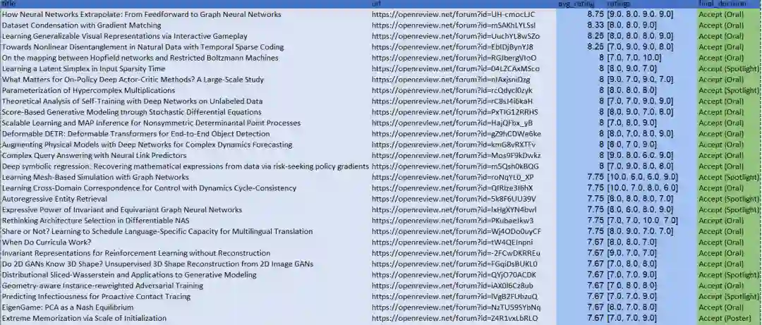 便捷下载,请关注专知公众号(点击上方蓝色专知关注) 后台回复“ICLR2021” 可以获取《ICLR2021放榜了!687篇入选34篇得满分!48篇orals,108篇spotlights,531篇poster》专知下载链接索引