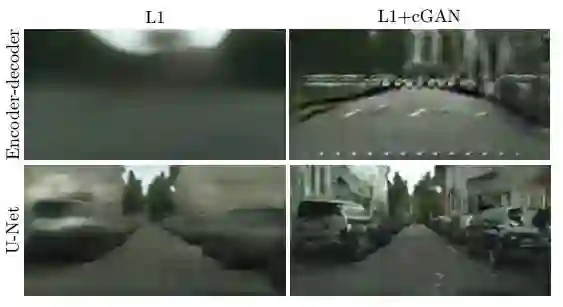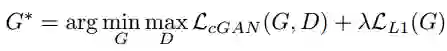 pix2pix和SRGAN的一个异曲同工的地方是都有用重建解决低频成分,用GAN解决高频成分的想法。在pix2pix中,这个思想主要体现在两个地方。一个是loss函数,加入了L1 loss用来让生成的图片和训练的目标图片尽量相似,而图像中高频的细节部分则交由GAN来处理: