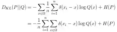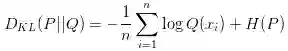 公式的第二项就是熵,先不管这项,用H(P)表示。接下来考虑一个小trick:从Q中抽样n个样本,来估算P(x)的经验值(empirical density function):