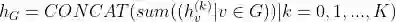 对于每轮迭代产生的节点特征求和,然后拼接作为Graph的特征表示: