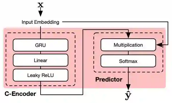 点击预测包含了两个部分:C-Encoder和Predictor,如图8所示。C-Encoder用来学习序列行为的表示。然后Predictor利用C-Encoder编码之后的结果产生推荐列表。