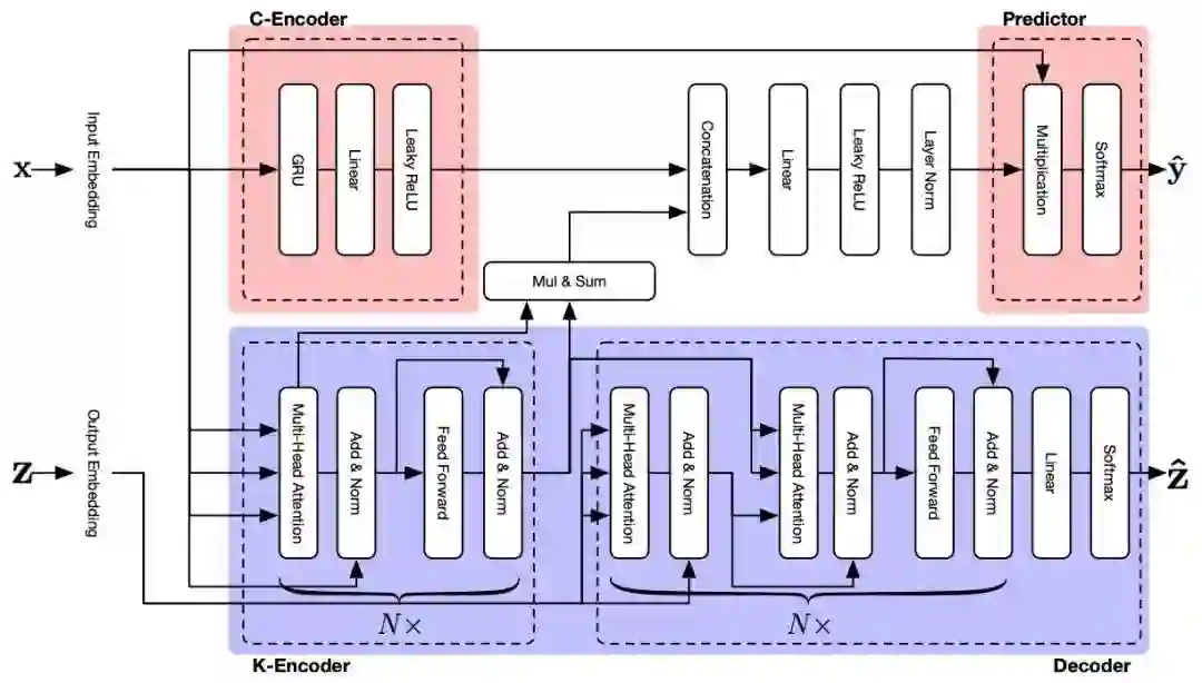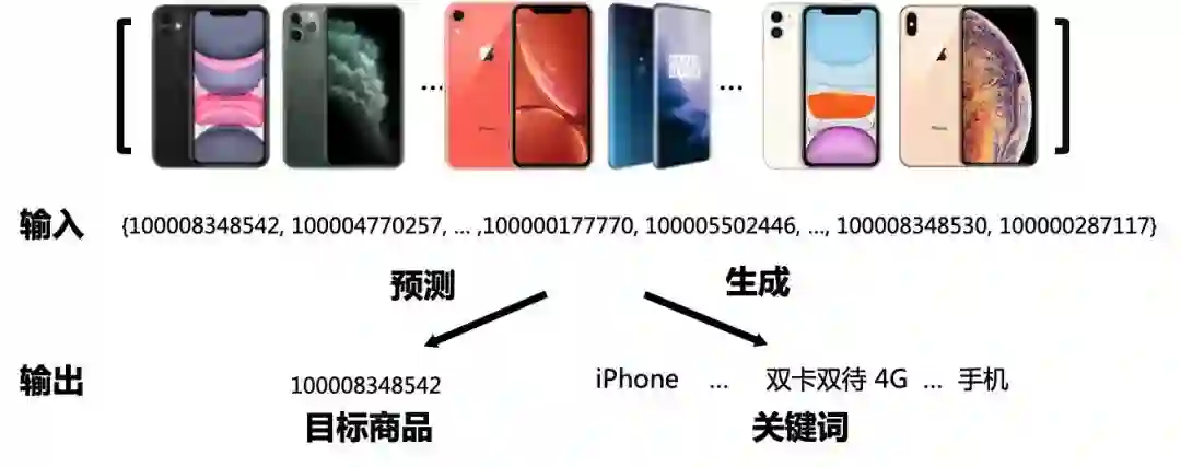 其中 是输入的点击序列、 是产生的推荐结果以及 是生成的关键词。同时受到关键词 和最后一个点击 的监督,模型 能够同时输出推荐列表 和关键词 。