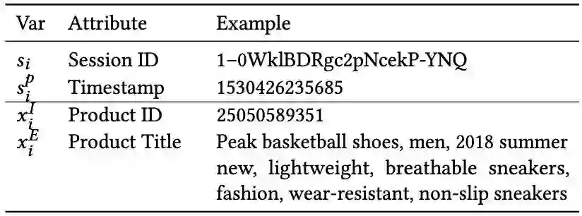 然后,我们进一步处理收集的点击数据以进行实验。我们通过会话唯一的ID将点击数据分成多个会话。参考[3],我们保留了会话长度范围为5到20的会话。然后我们将最后两个小时的会话作为测试集,其余的会话作为训练集。表2提供了我们收集的实验数据集的详细统计信息。