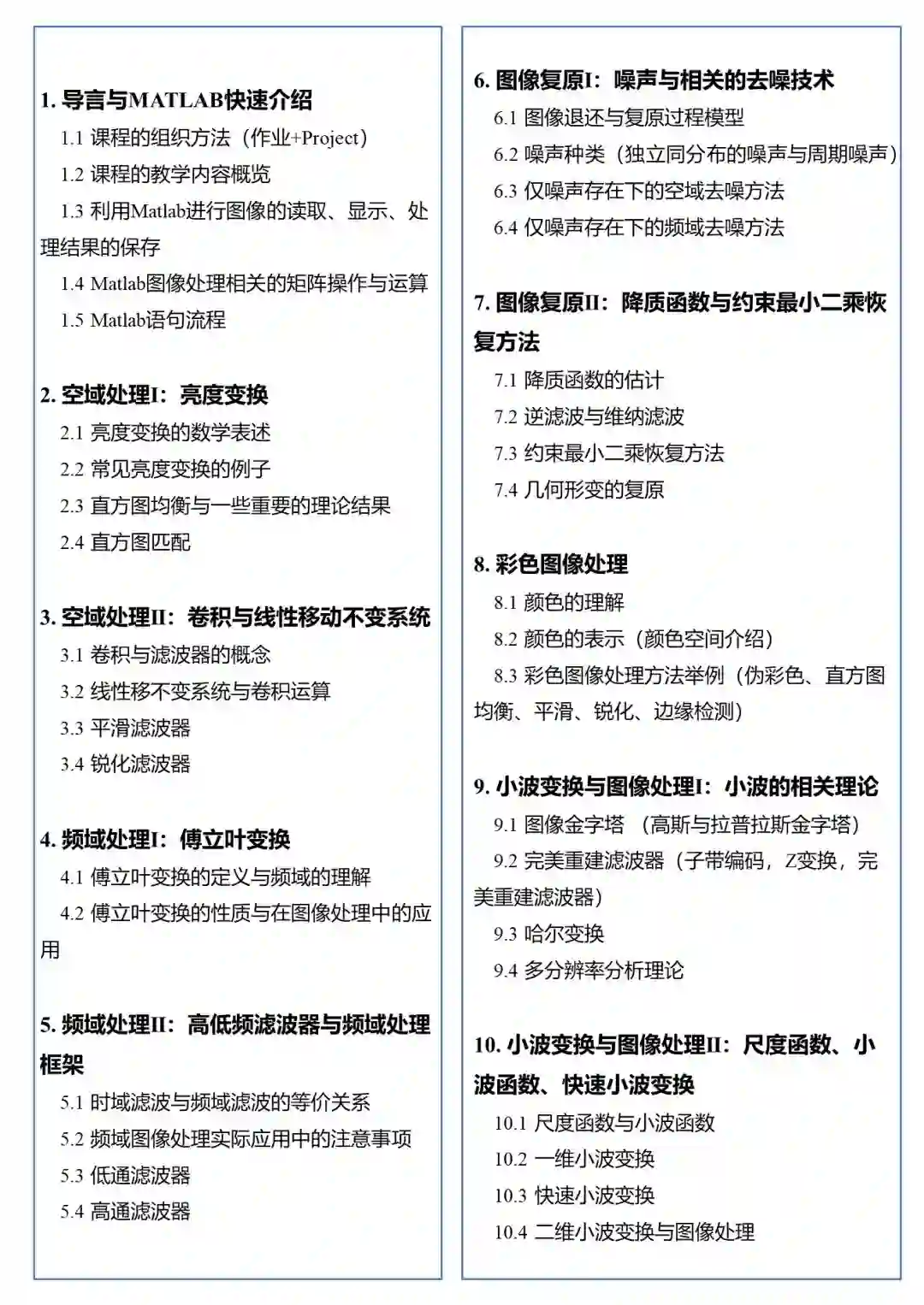 本课程将详细讲解图像处理中的空域处理、频域处理、图像复原、彩色图像处理以及小波变换等基础知识,并结合代码实践、作业巩固等方式来帮助学员更快更好的掌握所学知识内容。