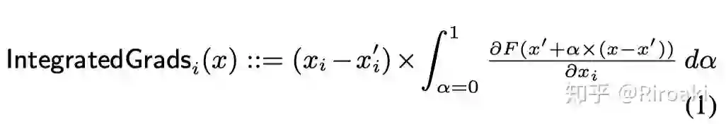 所谓积分梯度,就是将输入沿着基线(即输入的变化起点)到当前值(即当前输入)的梯度进行积分,获得一个路径积分: