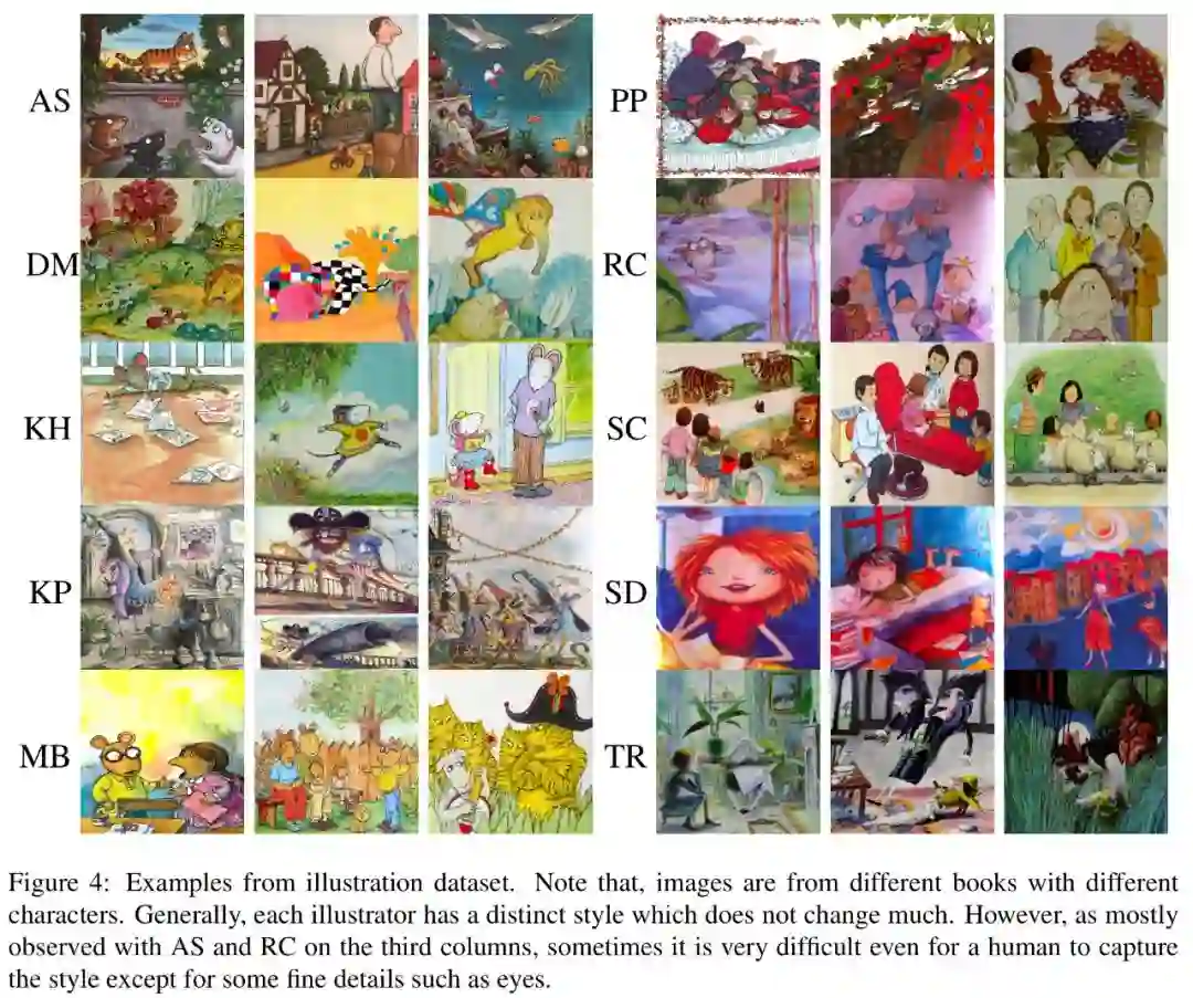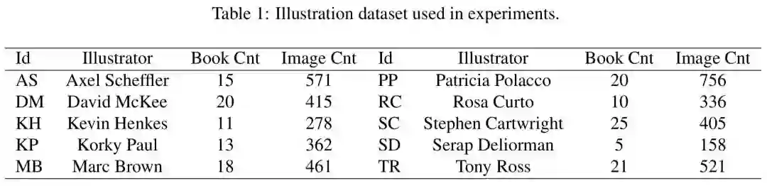 作者构建了一个包含24个艺术家的9500张插图的数据集,其是目前已知的最大的儿童读物插图数据集;