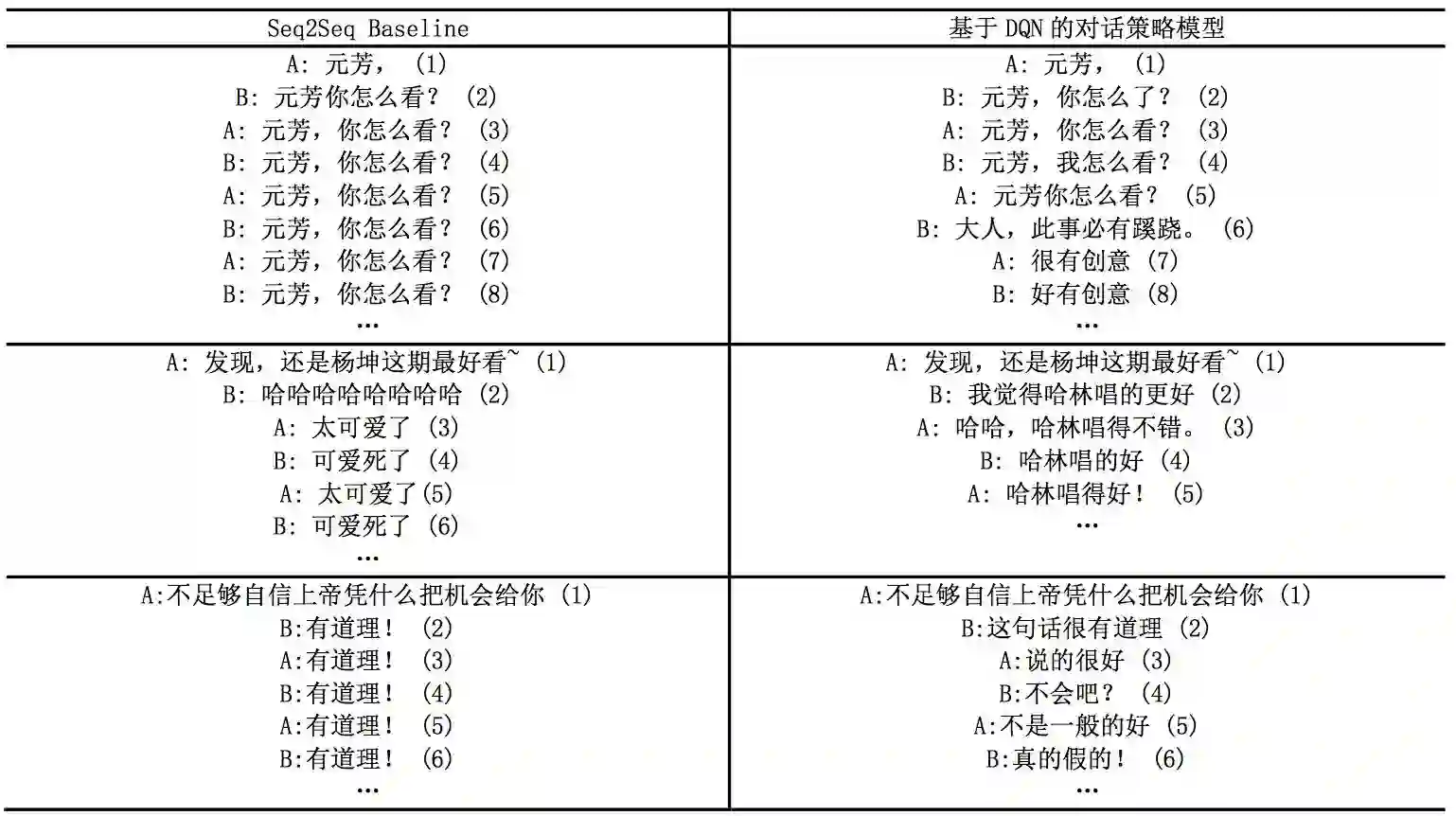 △ 表2:DQN和Baseline多轮对话对比