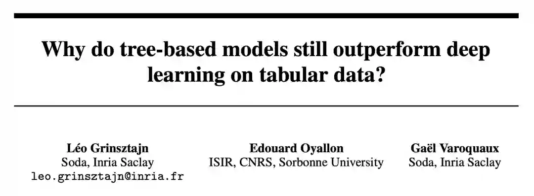 为什么基于树的机器学习方法,如 XGBoost 和随机森林在表格数据上优于深度学习?本文给出了这种现象背后的原因,他们选取了 45 个开放数据集,并定义了一个新基准,对基于树的模型和深度模型进行比较,总结出三点原因来解释这种现象。