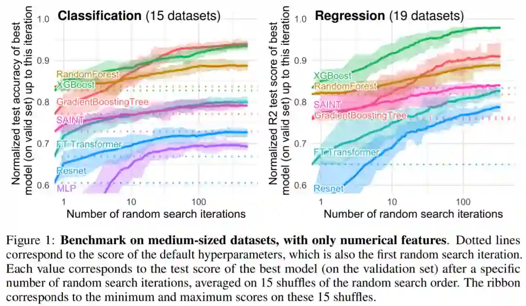 该研究在表格数据的多种设置下比较了深度学习模型和基于树的模型,并考虑了选择超参数的成本。该研究还分享了随机搜索的原始结果,这将使研究人员能够廉价地测试新算法以获得固定的超参数优化预算。