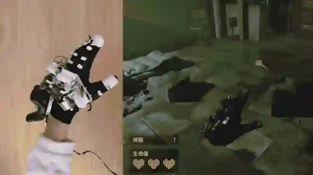 当我戴上做好的触觉手套,调整好 Valve Index(VR 头显)的位置,启动游戏《半条命:Alyx》。我身处熟悉的“17 号城市”,从背包中掏出手枪,瞄准散落在街边的酒瓶,“砰!”在开枪的一瞬间,我脑补应该有一股后坐力传来。实际上,仅是我的食指在扣动扳机的那一刻被拉住了——要说这体验比在公园打气球还“塑料”。