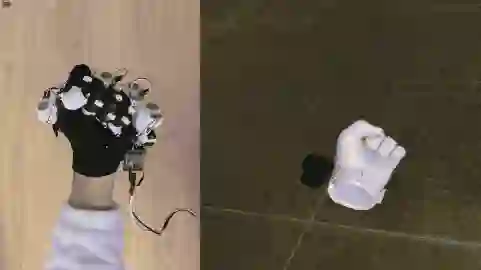 在建模“数据手套”上,也有例如基于 IMU(惯性测量单元)或弯曲传感器的其他实现方式。所谓惯性传感器是测量物体三轴姿态角和加速度的装置,一般包括三轴陀螺仪、加速度计、磁力计来进行多传感器数据融合,以重建每根手指的三自由度方向。弯曲传感器更好理解,手指在做弯曲动作时,发生物理变形来使传感器阻值发生变化。