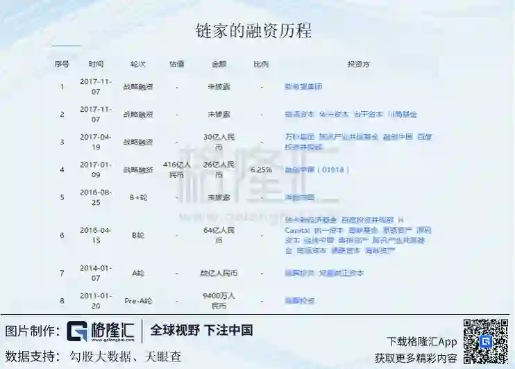 最新一轮的2018年的融资情况则进展不顺利,2018年9月,链家以约130亿美元的估值向投资者融资约20亿美元,潜在的投资者包括腾讯控股(00700.HK)和美国的私募股权公司华平投资集团。但由于华平投资集团觉得估值过高,可能存在泡沫而退出,该公司已于近日确定不参与链家的20亿融资计划。