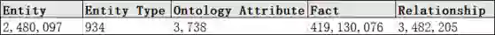 最终构建的中文开放人物知识图谱由2,480,097个图形实体组成。共提取了3,482,205个关系三元组,其中17,491个来自非结构化数据,其余来自结构化或半结构化数据。总共提取了419,130,076个属性三元组,其中14,232,058个来自非结构化数据。下图描述了最终的人物知识图谱的规模。