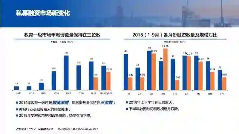 事实也验证了他们的判断。在2015年,A股开始跨界收购教育资产,也反向吸引了更多的投资人,一级市场私募投资者开始投资教育行业。“发展至2016年、2017年私募融资的数量和规模一直在往上走。”