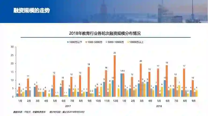 之所以出现这种情况,他认为,这和教育项目的发展阶段有关系。早在2014年、2015年,投资人开始介入教育行业,项目也在逐渐成长,到2018年上半年的时候就有非常多的项目已经发展到比较成熟的阶段,B轮,C轮甚至D轮。因此,它的融资规模就上去了。