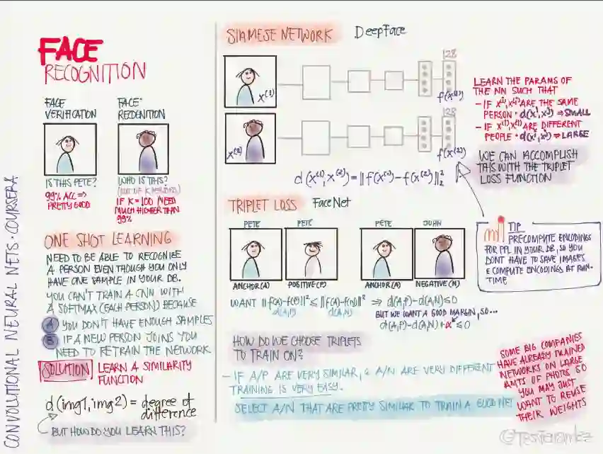 当样本量不足时,或者不断有新样本加入时,需要使用 one-shot learning,解决办法是学习相似性函数,即确定两张图像的相似性。比如在 Siamese Network 中学习人脸识别时,就是利用两个网络的输出,减少同一个人的两个输出的差别,增大不同人的两个输出之间的差别。