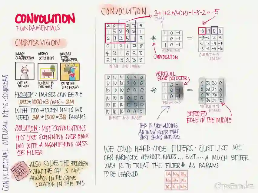 计算机视觉任务涉及的数据体量是特别大的,一张图像就有上千个数据点,更别提高分辨率图像和视频了。这时用全连接网络的话,参数数量太大,因而改用卷积神经网络(CNN),参数数量可以极大地减小。CNN 的工作原理就像用检测特定特征的过滤器扫描整张图像,进行特征提取,并逐层组合成越来越复杂的特征。这种「扫描」的工作方式使其有很好的参数共享特性,从而能检测不同位置的相同目标(平移对称)。