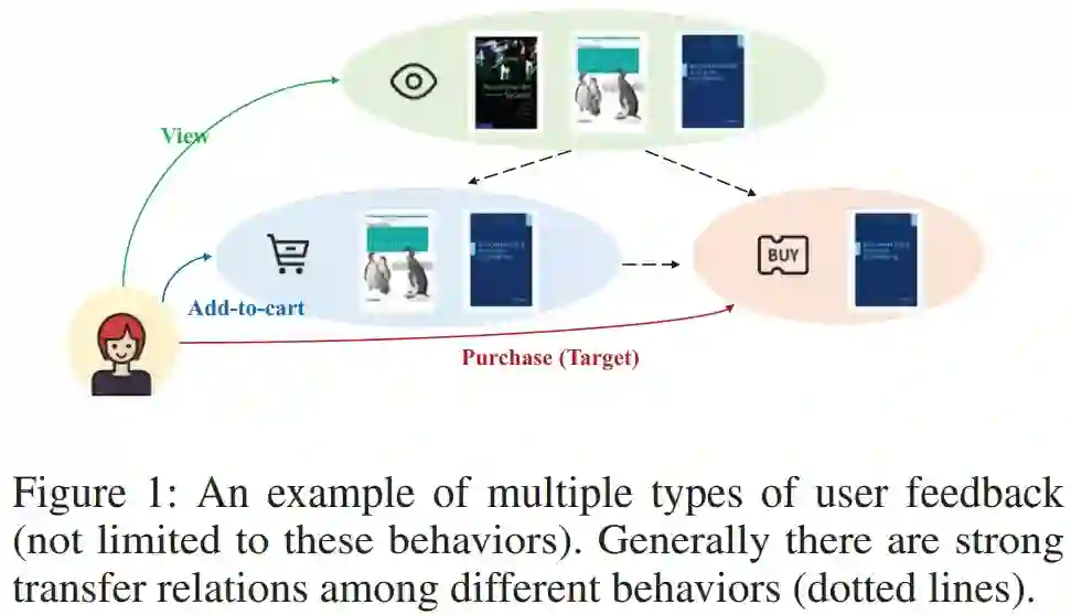 在工业的推荐场景中,不同的行为 (比如浏览、点击、添加购物车、购买) 是建模用户偏好的关键。