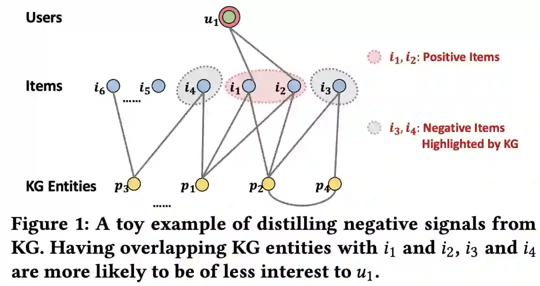 KGPolicy [73] 利用知识图谱的辅助信息和强化学习的方法寻找高质量的负例,DSKReG [76] 则是在知识图谱上根据相连的关系和结点嵌入计算邻居结点的相关性分数。