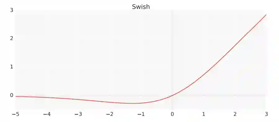 ReLU函数似乎已经作为深度神经网络激活函数的标配,因其收敛快,而谷歌的大神Quoc V. Le最近提出了一种新的激活函数,取名为Swish,形式非常简单:f(x)=x*sigmoid(x),图像如下所示,文中指出Swith在一系列任务上表现要比ReLU要好,期待TensorFlow尽快把这个函数加进去吧。[2]