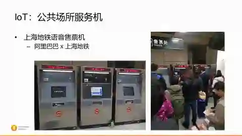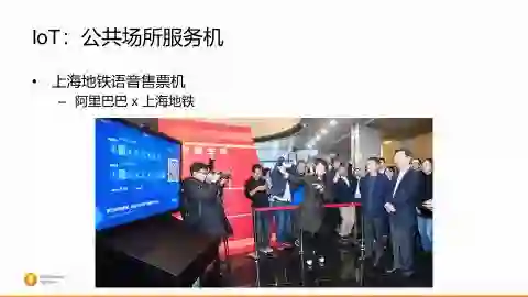 不仅限于此,语音交互智能还逐渐地也在向公共服务领域在发展。在去年底的时候,马老师和上海地铁的董事长一起参观了语音售票的概念机。通常在地铁站里面用售票机的就是外地的游客、出差的人士,他们对上海不熟,只知道自己要去哪,不知道要坐哪一条线、在哪一站换乘、在哪一站下。通常在原来就得通过高德,比如说把路线先查好,再去买票。有了这个语音售票机以后,后面对接的就是互联网的数据,高德的数据,你只要对着售票机说出你想要去的地方,所有的路径规划、怎么换乘、哪站下、需要多长时间、需要多少钱买到这张票,一目了然,然后通过支付宝的方式,就可以实现整个的购票的过程。
