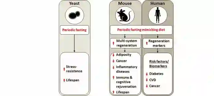 轻断食的效益在酵母与小鼠研究中得到证实,目前在进行人类试点研究(图片来源:Valter Longo/Cell Metabolism 2015)