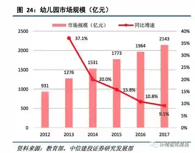 由于政策的普惠导向,整体市场增速稍有下降,但伴随着85%毛入园率的要求,学前市场仍旧具有长足发展动力。