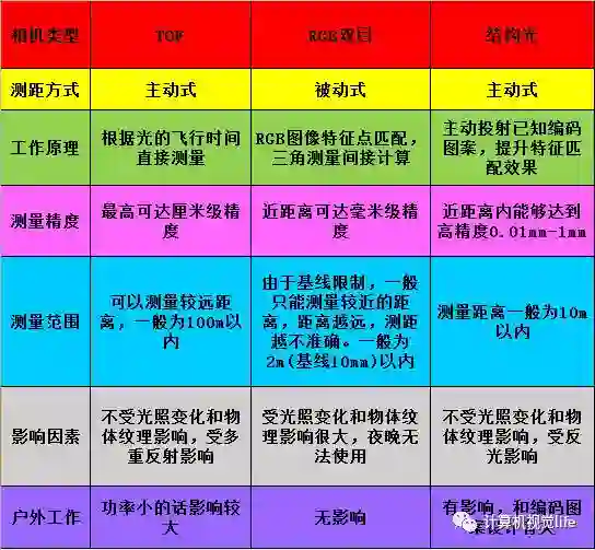 前面的文章分别介绍了三种深度相机的原理:TOF(深度相机原理揭秘--飞行时间(TOF))、RGB双目(深度相机原理揭秘--双目立体视觉)、结构光(深度相机原理揭秘--结构光(iPhone X 齐刘海原理))。看起来它们都各有利弊,那么在实际产品研发中如何选择深度相机呢?
