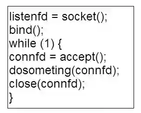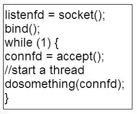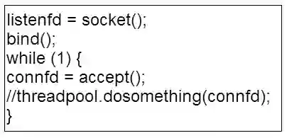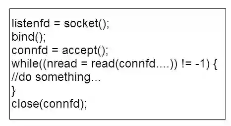 以 TCP server 为例来展开说明,最简单的一个 TCP server 代码,版本一示例如图 3 所示。