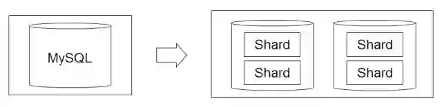 在这种情况下,需要考虑的是如何将数据进行分片,引入多个 MySQL 实例,增加资源,如图 1 所示。