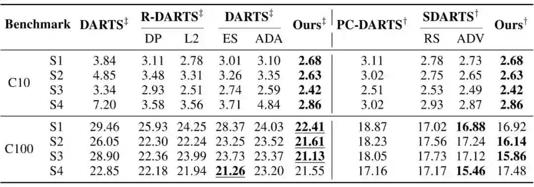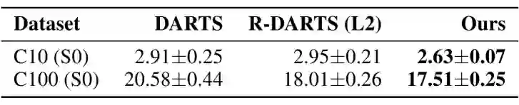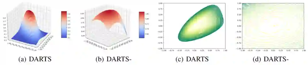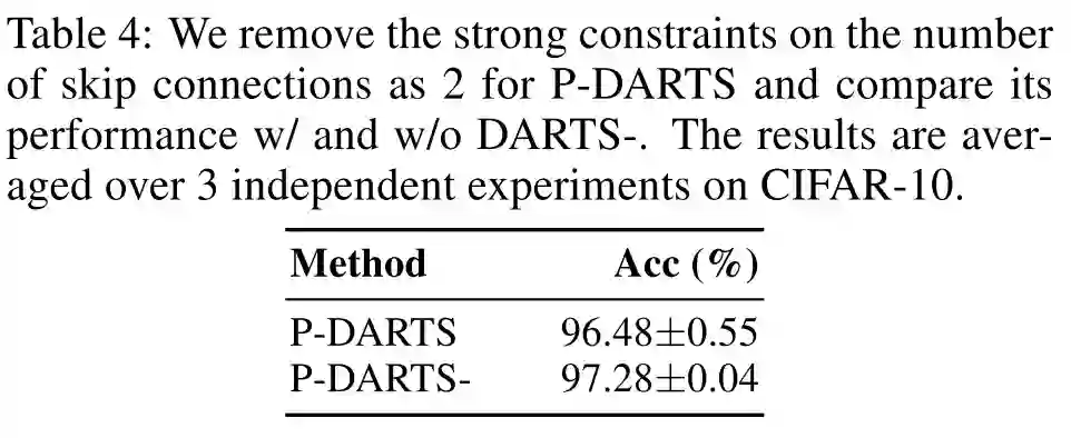 的分析,可以看出:额外的跳跃连接可以减轻 βskip 的优势并使得架构参数的竞争更加公平。即使 β 逐渐衰减时,由于网络权重 W 已经逐渐收敛,因此依然能保证公平的竞争。综上所述,DARTS- 可以提升 DARTS 搜索阶段的鲁棒性。