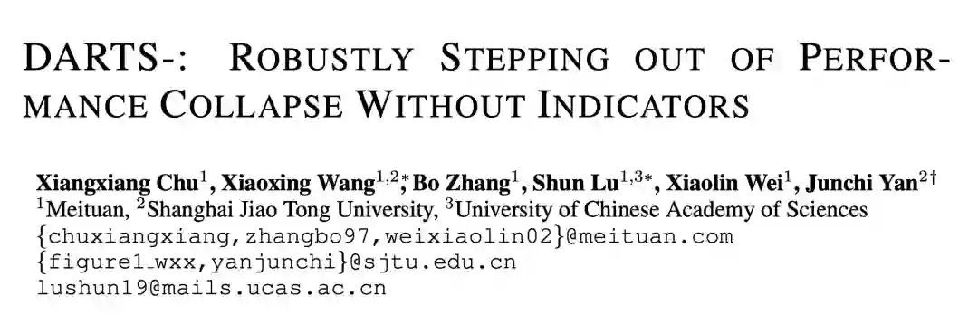 可微分神经网络搜索(DARTS)存在普遍的性能崩塌,现有提升方法使用了先验知识或用指示信号来判别崩塌是否发生,而计算指示信号非常耗时,我们的出发点是能否不通过人为先验或需要耗费算力的指示信号来解决该问题。