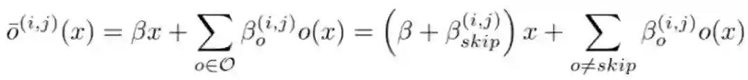 其中 β 表示额外跳跃连接的权重,βskip 表示候选操作中跳跃连接的权重。