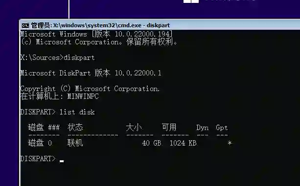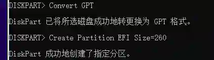 接下来,我们需要 GPT 分区,GPT 分区是 UEFI 标准的一部分,方法很简单,输入