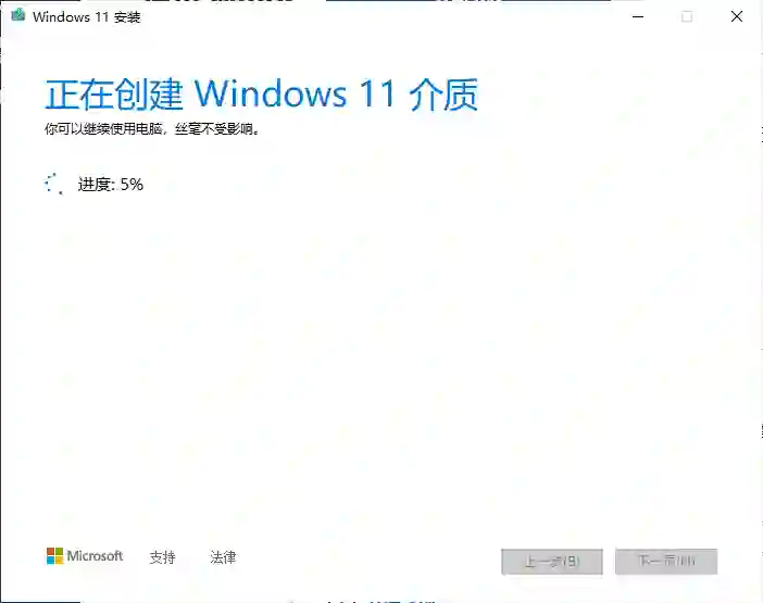 接下来媒体创建工具就会下载 Windows 11 镜像并开始对 U盘进行读写操作,之后就会制作好用于安装 Windows 11 的启动 U盘。