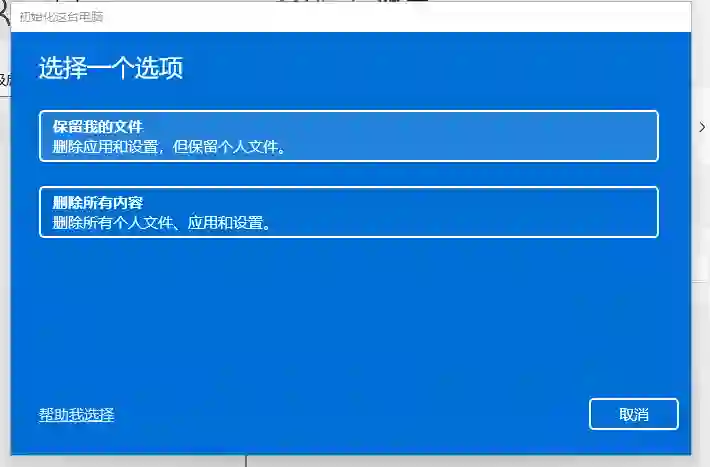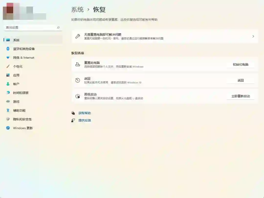 如果上述办法没有帮到你,那么接下来最好的办法也确实是重装系统了。很多人一想到重装系统就会联想到要和系统底层打交道,实际上 Windows 11 也内置了一个快捷重装系统的入口,位于「设置-系统-恢复-重置此电脑」,点击「初始化这台电脑」, 选择「保留我的文件/删除所有内容」-「云下载」等待系统下载完毕,即可轻松进入重装环节。
