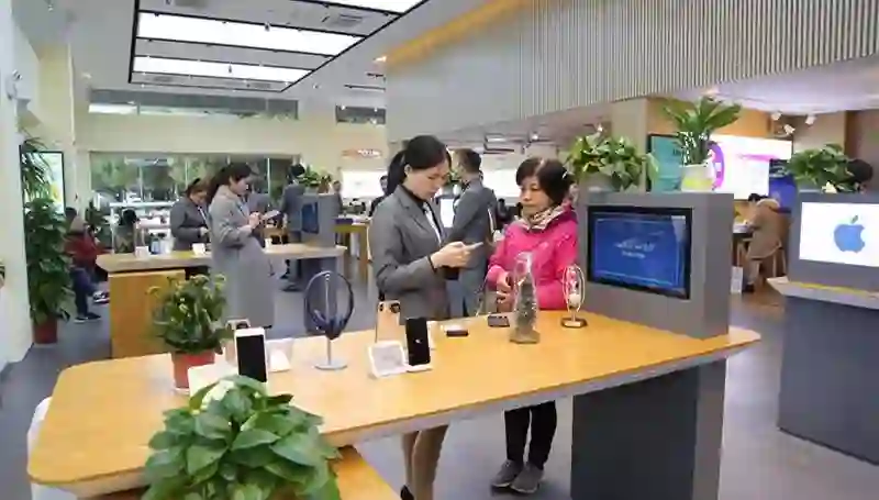 在现场,营业厅的业务流程已经从传统柜台受理向“场景化体验、走动式营销”方式转变,实现展销一体的新零售模式。