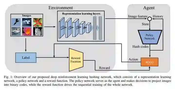 这种深度学习网络包括特征表示网络和策略网络。策略网络利用递归神经网络(RNN)作为代理,按时间顺序将图像投影为二进制代码。